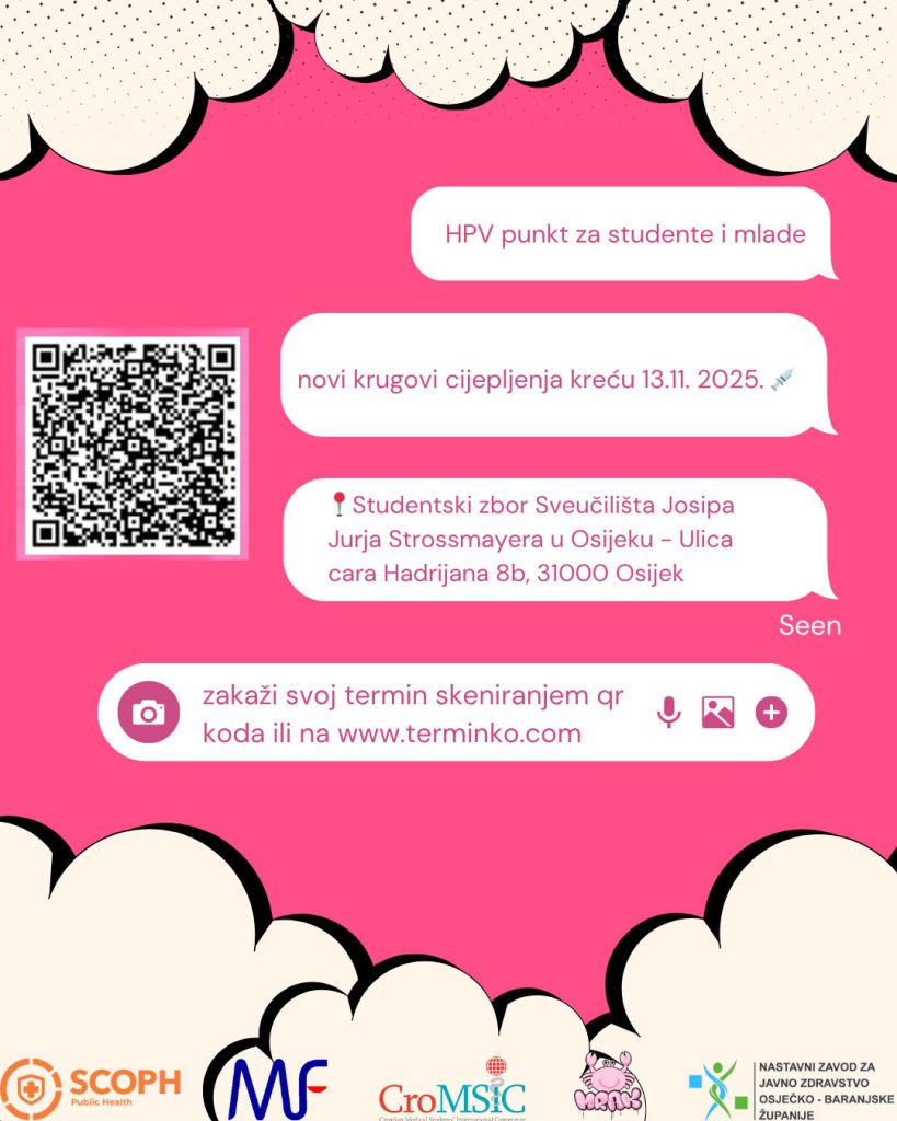 HPV cijepni punkt već dugi niz godina organizira udruga studenata medicine Medicinskog fakulteta Osijek (CroMSIC) te liječnici stručnjaci iz Zavoda za javno zdravstvo Osječko baranjske županije.