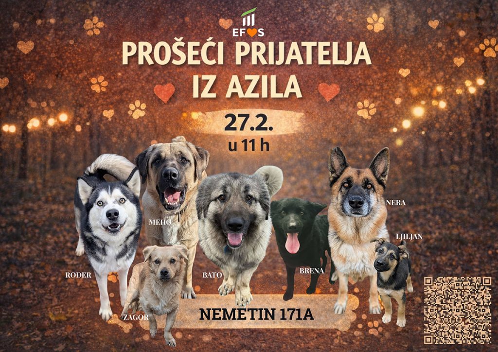 Volonterski program EFOS-a nastavlja sa svojim aktivnostima, a sljedeću akciju posvećujemo čovjekovom najboljem prijatelju! Pozivamo vas da nam se pridružite u petak, 27. veljače 2026., i uljepšate dan štićenicima osječkog Azila.