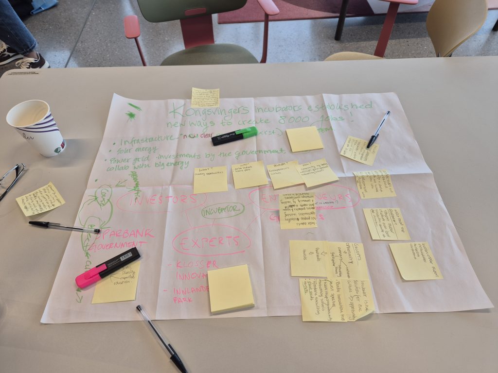 During an intensive week, students worked in international groups on a project about the future development of the Kongsvinger region. Their final exam is a poster from each group, presenting ideas and strategies related to campus and student life, innovation and incubators, research opportunities, local business development, and Norwegian-Swedish cross-border cooperation.
