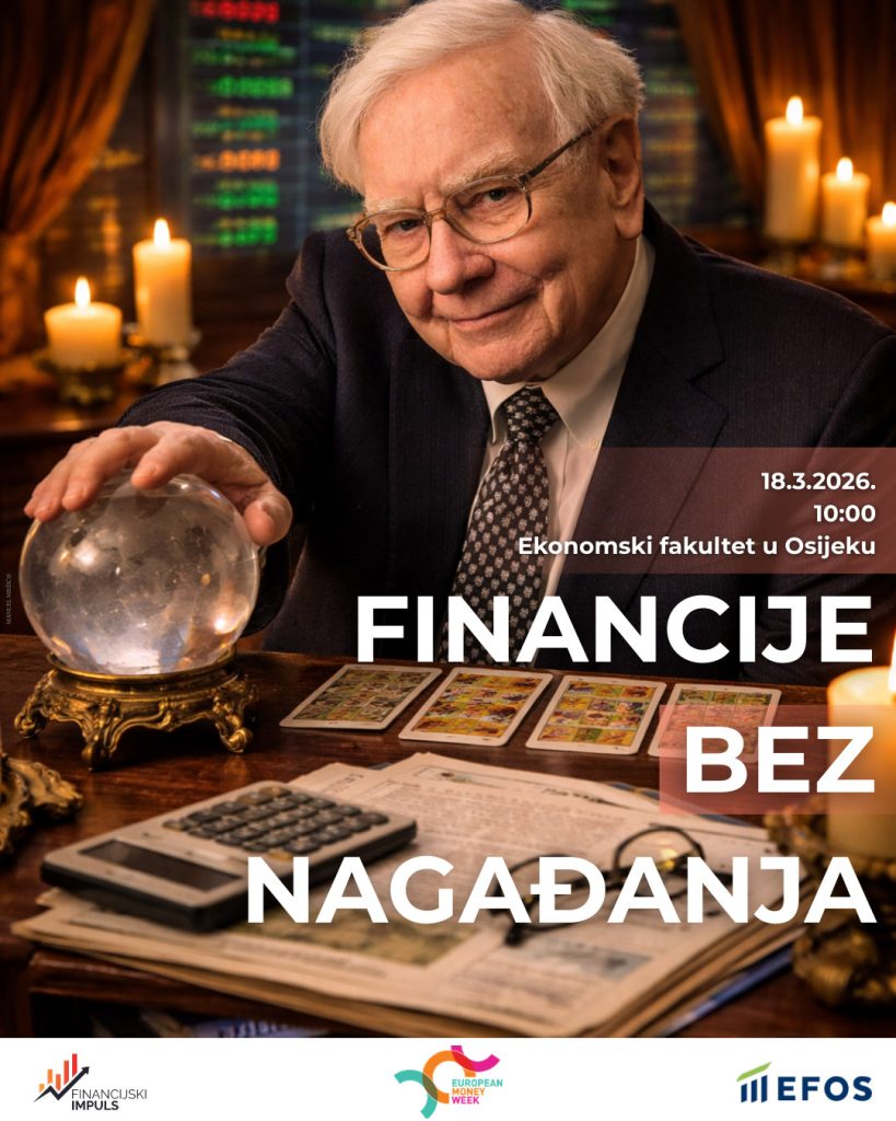 Udruga Financijski impuls najavljuje Europski tjedan novca 2026., koji će se održati 18. ožujka 2026.  godine na Ekonomskom fakultetu u Osijeku (Aula glagoljice) s početkom u 10:00 sati. Sudionici će imati priliku sudjelovati u programu posvećenom financijskoj pismenosti, digitalnoj transformaciji financija i pametnom upravljanju novcem.